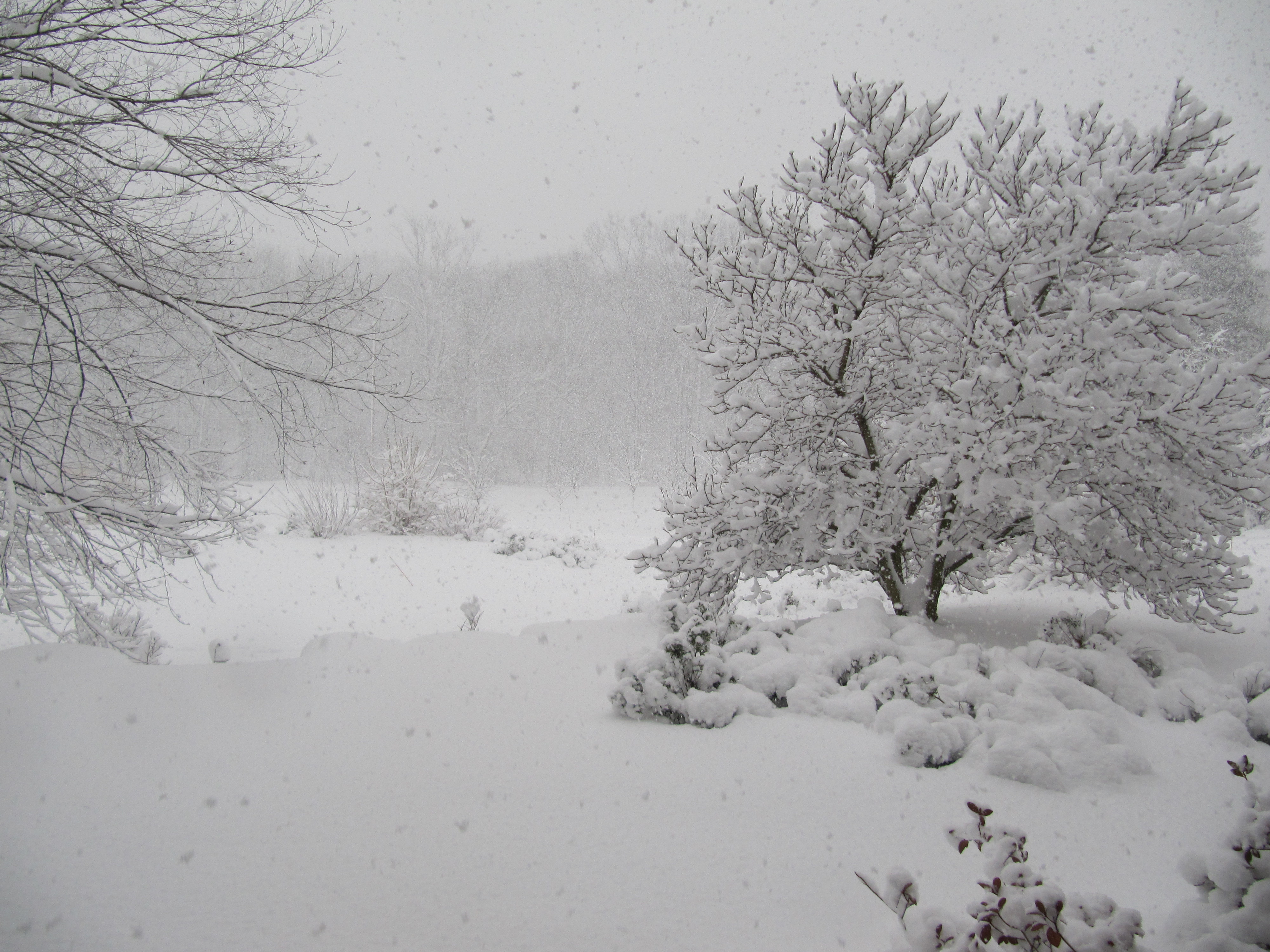 Update 5:15: Hello everyone it’s Blog-Master Jason Hirsch reporting. This storm really has shown all of its true colors in the last few hours. 2-3″ per hour snowfall rates have been plaguing the northern part of the coverage area for a while now. Some bad news from contributor Brett, his transformer near his house exploded when a branch fell from the weight of the snow onto the power lines. He will be out of commission for a little while as he does not have internet (nor power). I have a feeling that this storm isn’t departing for another 4-5 hours, so brace yourself inside and have a nice warm cup of soup. IF you need to go out onto the roads, be weary that it is extremely treacherous out there (Brett was helping a car that was stuck when the tree branch fell onto the power lines). I;m going to leave you now with a few pictures I took this afternoon: