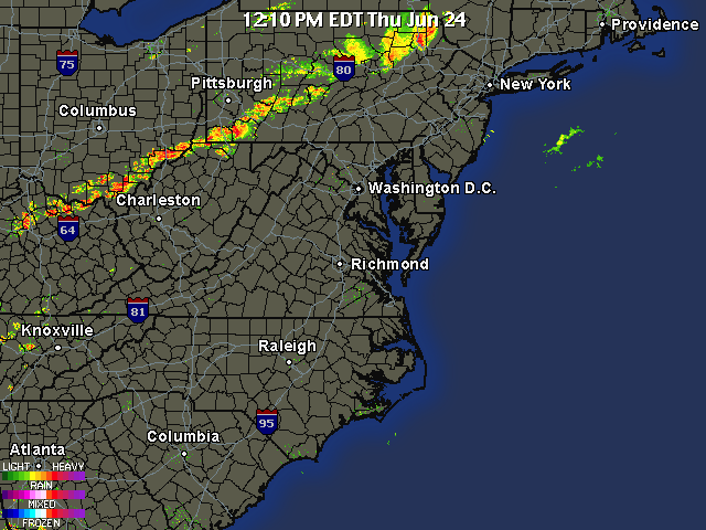 As highs today reach the mid 90s, strong storms are forming in Central Pennsylvania right now. There is a Severe Thunderstorm Watch for that area right now, which will most likely be issued for our area by the mid-afternoon. The SPC placed the coverage area in a slight risk for severe weather and we are still under an excessive heat watch. The main threat for the thunderstorms today will be high, destructive winds. I wouldn’t rule out a few tornadoes popping up in places later today either. I will keep you updated throughout the day as these storms progress eastward.