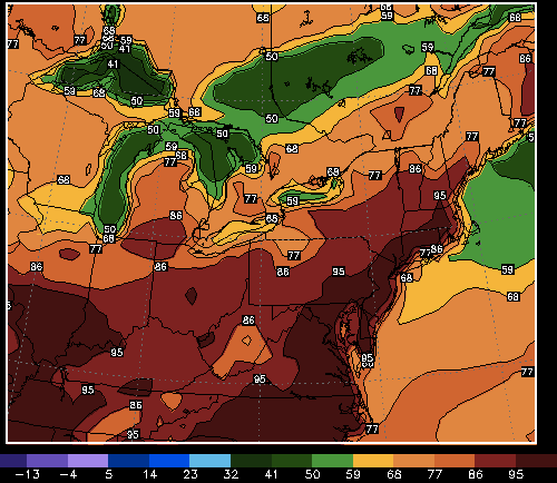 Here is the NAM’s predicted temperatures for Thursday afternoon. The scale only goes to 95 degrees, and it is showing temperatures hotter than that.